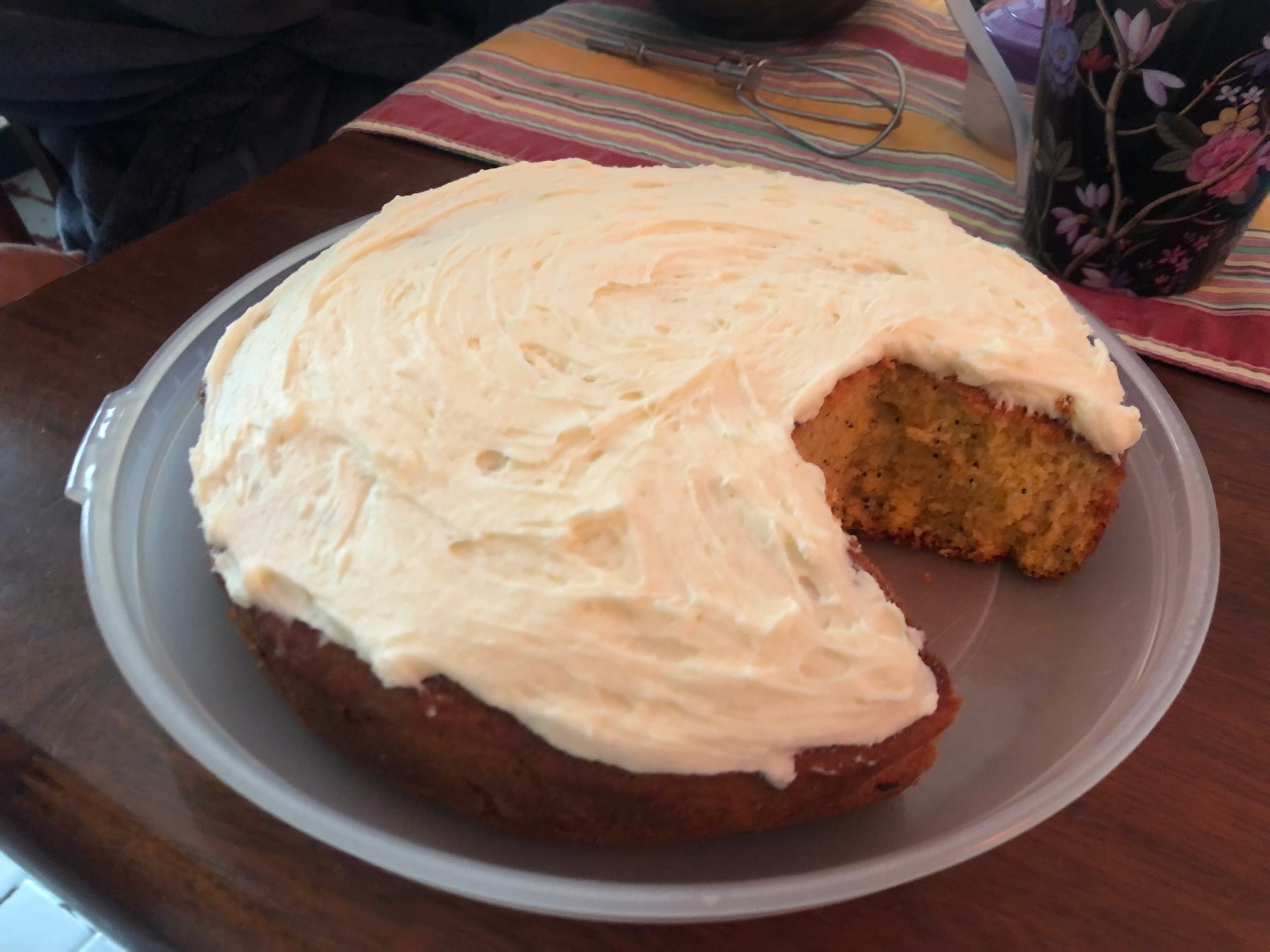 The above cake has a strange shape cut out of it because, in a glorious moment of free-will realisation, I decided to eat some of it immediately after it came out of the oven rather than wait until the whole thing was cooled and iced. It was awesome.