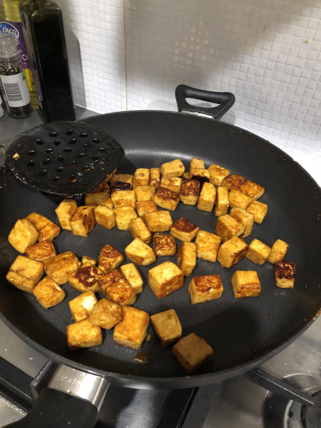 In progress shots cooking one of my favourite veggo meals, tofu stir fry! You can use basically any type of tasty sauce with it, so it is very versatile and easy to switch up when I get bored